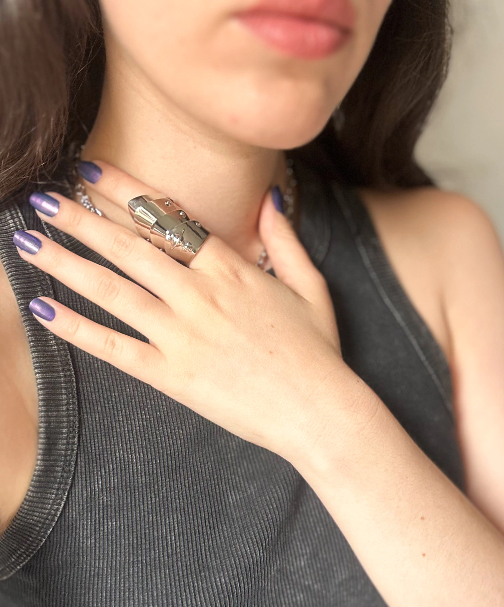 Anillo articulado inspirado en la estética de Nana y en los diseños icónicos de Vivienne Westwood. Fabricado en aleación de cobre de alta calidad que lo convierte en una pieza única.